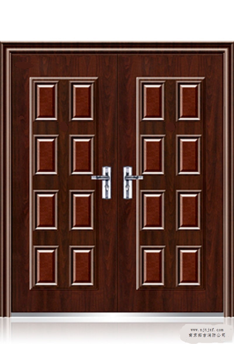 2、產品外觀門面有多種不同風格的定型圖案。獨具個性的設計、流暢的線條,突出了產品的整體美觀感,顯示出端莊、時尚的特點。門扇內部填充新型環保阻燃隔熱材料,在門面凹凸部位經專業設備定型、環保膠粘劑壓制成型。門扇與門框結合處均做防火密封處理,使防火性能大大加強。
