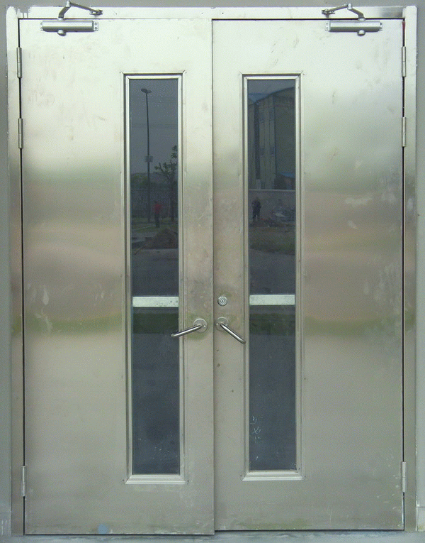 不銹鋼防火門由鋼質防火門外包門不銹鋼制造而成,面板采用304不銹鋼形材,具有優良的不銹耐腐蝕性能和較好的抗晶間腐蝕性能。對氧化性酸,實驗中得出:濃度≤65%的沸騰溫度以下的硝酸中,304不銹鋼具有較強的抗腐蝕性。門扇之間填充隔熱耐火材料,防火鉸鏈、防火鎖具、防火膠條、和防火玻璃組成全部按照國家標準。根據尺寸規格定身制作,自由組合:尊重用戶意愿,按用戶要求規格定身設計、生產。達到國家標準GB12955-2008要求的穩定性、完整性和隔熱性。