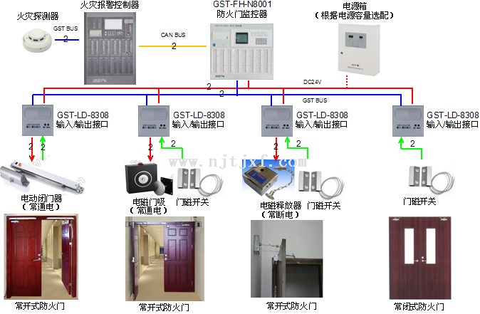 防火門是建筑物中使用比較廣泛的防火分隔構(gòu)件,而部分單位及人員在使用防火門時不能有效按照規(guī)范使用,造成可能存在的安全隱患,至此相關(guān)部門要求設(shè)置防火門監(jiān)控設(shè)備的使用,以保障產(chǎn)品功能有有效性。國家標(biāo)準(zhǔn)委批準(zhǔn)發(fā)布強(qiáng)制性國家標(biāo)準(zhǔn)《防火門監(jiān)控設(shè)備》,標(biāo)準(zhǔn)編號為GB29364-2012,于2013年7月1日實施。 無論常閉或者常開式防火門都有可能出現(xiàn)遇火時無法有效關(guān)閉,尤其是普通的常閉防火門,較多人出入后不能及時的進(jìn)行門體關(guān)閉,或者閉門器出現(xiàn)問題沒有及時發(fā)現(xiàn),一旦發(fā)生火災(zāi),現(xiàn)場沒人操作的情況下,防火門形同虛設(shè),造成的損失可能無法現(xiàn)象。 產(chǎn)品功能主要在于輔助保障防火門工作的正常性,防止發(fā)生火災(zāi)時門體無法關(guān)閉,通過增加自動啟閉系統(tǒng)能更好監(jiān)控防火門的使用,對處于非正常狀態(tài)的防火門給出報警提示,使其恢復(fù)到正常工作狀態(tài),降低了事故故障幾率也增長了產(chǎn)品使用壽命。 GB29364-2012《防火門監(jiān)控設(shè)備》規(guī)定了防火門監(jiān)控設(shè)備、防火門電磁釋放器、防火門門磁開關(guān)、常閉防火門電動閉門器的基本功能,以及防火門監(jiān)控設(shè)備的故障報警功能、自檢功能和電源功能。該標(biāo)準(zhǔn)的發(fā)布、實施將有利于防火門監(jiān)控設(shè)備的設(shè)計、生產(chǎn)、使用和質(zhì)量監(jiān)督。 防火門監(jiān)控系統(tǒng)又分為常開防火門監(jiān)控系統(tǒng)與常閉式防火門監(jiān)控系統(tǒng)。 監(jiān)控系統(tǒng)的組成: 防火門監(jiān)控設(shè)備、防火門監(jiān)控模塊、防火門閉門器、防火門磁開關(guān)和防火門磁釋放裝置組成。 常閉防火門監(jiān)控系統(tǒng): 日常情況下,防火門處于關(guān)閉狀態(tài)可以保護(hù)區(qū)域內(nèi)的財產(chǎn)安全,火災(zāi)發(fā)生的時候,可以在人員慌張混亂的情況下,通過報警和語音提示,快速有效引導(dǎo)人員快速疏散逃生。 常開式防火門監(jiān)控系統(tǒng): 日常情況下,防火門是保持開門狀態(tài),便于人員通行。火災(zāi)的時候聯(lián)動閉門器消防聯(lián)動自動關(guān)閉防火門,門狀態(tài)信息都可反饋至消防監(jiān)控室。