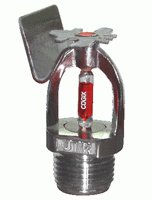 水平邊墻型噴頭是由噴頭框架、溫感元件、密封件、濺水盤等組成,其中噴頭框架是采用銅合金材質的精密鍛壓、外表層進行鍍鉻拋光的制造工藝,使其具有框架強度高、耐腐蝕性強、外觀精美的特點。溫感元件(玻璃球)具有動作可靠,反應速度快。密封件具有抗老化、耐腐蝕、密封性好的性能特點。水平邊墻型噴頭玻璃球的直徑為5mm[RTI 大于50(m·s)0.5且小于等于80(m·s)0.5]。依據玻璃球動作的溫度不同而分為多種溫級噴頭。