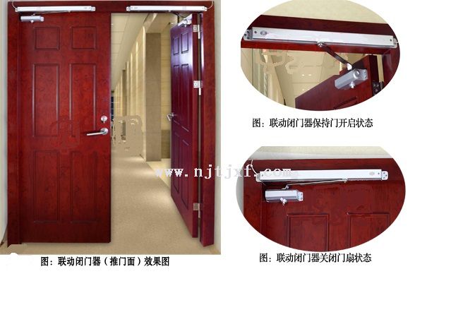 工作原理:通過聯動控制器連接整體消防系統,當控制中心發出指令后,隨即實現門扇啟閉,同時也可手動操作使用,具備普通防火閉門器功能。
