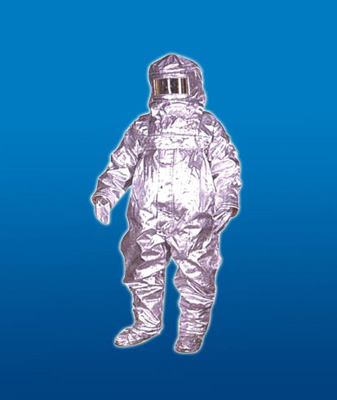 避火服采用高性能的優質面料制成. 適用環境:需要高溫作業的場所,如冶金,化工,特殊制造行業等。 高性能的避火隔熱服,可抵御1000OC的火焰,并能夠有效防護高溫水蒸汽的噴濺,該產品適合近火源使用,但不適合進入或穿越火源 Aramidic復合材料,全身式防護服 外覆鋁質保護層,服裝前部拉鏈帶有保護翻邊和按扣 可分離式頭罩,頭部為鍍金玻璃面窗 內置安全頭盔,帶呼吸器背囊。可以配合自給正壓式呼吸器使用 整體產品包括五指手套及防護靴。