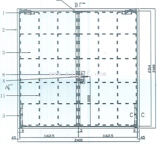 2400mm*2400mm屬于較大規格防火門系列產品,門體框架部分主要采用鍍鋅鋼板和不銹鋼板制造,內部填充耐火隔熱材料,邊框縫隙處鑲嵌防火密封條,一旦發生火災可為火場中人搶險救援工作的開展提供寶貴時間。