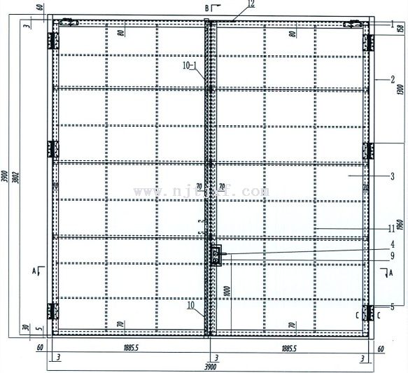 3900mm*3900mm防火門為雙扇對開平板門,門扇開啟凈尺寸可達到3700mm*3800mm以上,滿足各類建筑防火需求;產品耐火極限時間為1及1.5小時,達到乙級和甲級防火門標準。